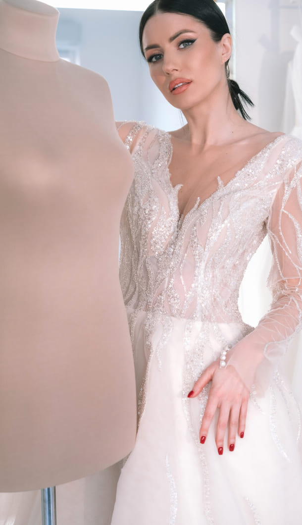 Kleitas korekcija pēc figūras — mūsu meistari rūpīgi pielāgos kleitu jūsu figūrai, lai tā perfekti pieguļ un sniedz komfortu pašā svarīgākajā dienā.
